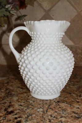 Title (ebay affiliate link): FENTON WHITE MILK GLASS HOBNAIL PITCHER 8 1/2 INCHES TALL