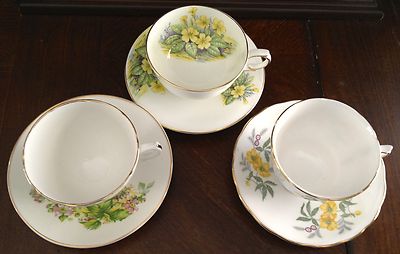 Lot of Vintage Fine Bone China Teacups and Saucers, set of 3