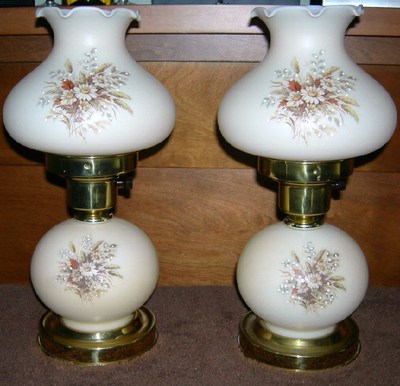 Title (ebay affiliate link): Pair-Antique Lamps with Night Light Base, Tan Frosted Glass, Floral, Electric