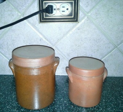 Title (ebay affiliate link): Pottery Crock Lot of 2 Made In France Stacking Handle Lid Groove Detail Nice