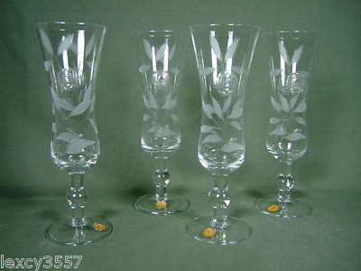 FOUR VINTAGE ETCHED FLORAL WINE GLASSESMADE IN ROMANIA