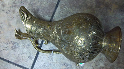 Title (ebay affiliate link): Antique Brass Pitcher Cobra Snake Handle Intricate 10" Rare Old Piece!