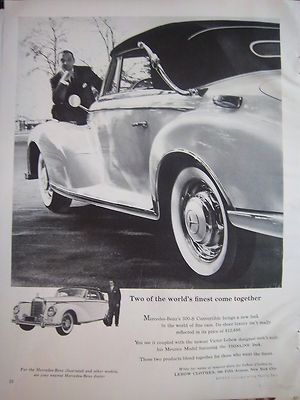 Title (ebay affiliate link): 1956 Vintage Lebow Mens Clothes showing Mercedes Benz 300-S Convertible Car Ad