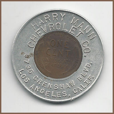 Title (ebay affiliate link): 9. ENCASED LINCOLN CENT FROM 1948 D / HARRY MANN CHEVROLET LOS ANGELES