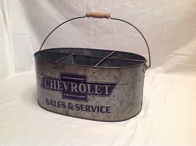 Chevy Metal Oil Can Vintage Bucket Galvanized Garage Tool Storage Bin Chevrolet