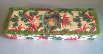 Title (ebay affiliate link): Antique 1910s-30s Vintage Christmas Decorative Box,Mistletoe,Georgian Woman