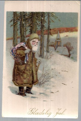 vintage full length brown suited danish santa claus postcard c. 1905