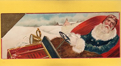 Title (ebay affiliate link): Folding Merry Time this Christmas, blue suit SANTA in Automobile, glitter,