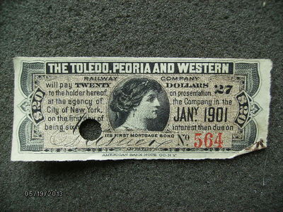 TOLEDO PEORIA & WESTERN RAILWAY 1901 BOND COUPON