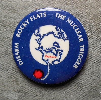 Title (ebay affiliate link): Disarm Rocky Flats The Nuclear Trippger 1 1/2" Pinback