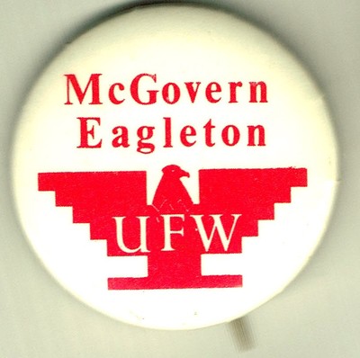SCARCE 1972 GEORGE McGOVERN - EAGLETON UFW PIN, PINBACK BUTTON g496
