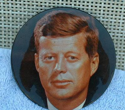 Title (ebay affiliate link): Vintage 1960s JFK John F. Kennedy Photo Portrait Style Pinback Button