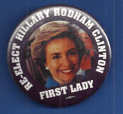 Title (ebay affiliate link): RE-ELECT HILLARY RODHAM CLINTON FIRST LADY 1996 PINBACK BUTTON DEMOCRAT 2 1/8"