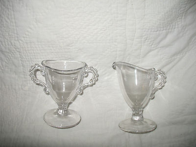 Title (ebay affiliate link): Elegant Clear Glass Creamer and sugar bowl- Bubble Boopie - Beaded Handle