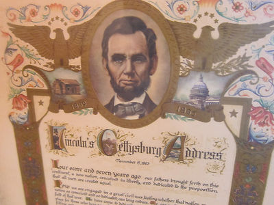 Title (ebay affiliate link): Lincoln's Gettysburg Address, antique framed souvenir copy