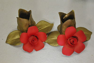 Capodimonte Savastano Porcelain Flower Figurine Candle Holders Made in Italy