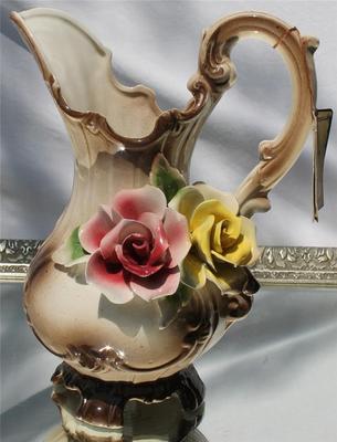 Title (ebay affiliate link): CAPODIMONTE PORCELAIN 10" BROWN & WHITE EWER PITCHER w/ APPLIED ROSES ITALY