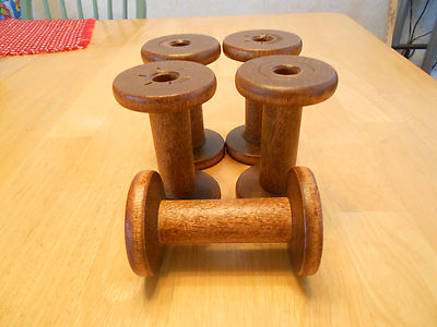 Title (ebay affiliate link): 5 WOODEN SILK SPOOLS, BOBBINS 4" NICE PATINA!!!