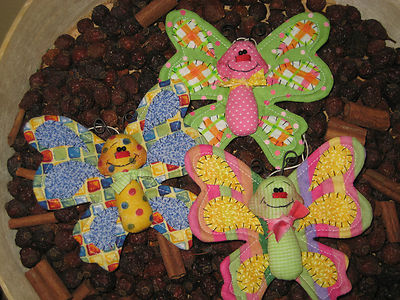 PRIMITIVE HC SET 3 BUTTERFLY SHELF SITTERS ORNIES TUCKS MINI MINIATURE