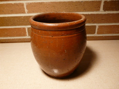 Title (ebay affiliate link): SMALL ANTIQUE REDWARE GLAZED CROCK - GLAZED - BULBOUS