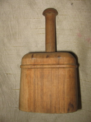 Title (ebay affiliate link): Vintage Antique Primitive Wooden Butter Mold Press Stamp flower square w/ handle