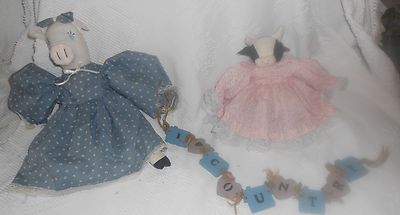 Cow & pig rag dolls cute farm animals decor wooden I love country banner