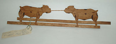 Antique VINTAGE AMERICAN Folk Art WOODEN Wood DOG Rubber Band TOY,1920s