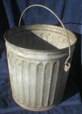 antique galvanized corrugated small garbage can garden pail bucket wheeling? 13"
