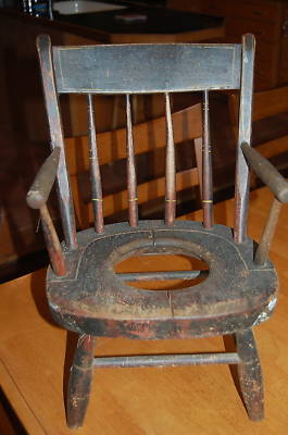 Title (ebay affiliate link): ANTIQUE CHILD'S PERIOD THUMB BACK WINDSOR POTTY CHAIR