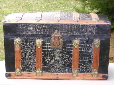 Title (ebay affiliate link): Antique Embossed Alligator Dome Top Chest Trunk NICE NR