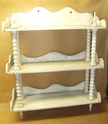 Title (ebay affiliate link): 1930 WOODEN THREE SHELF WALL STAND WITH SPOOL SUPPORTS