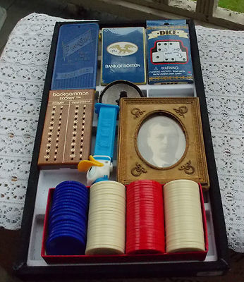 LOT Vintage Games Pik-a-Stik Backgammon Scorer Dice Playing Cards Photo Pez NR