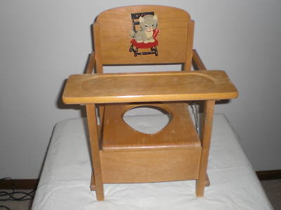 VINTAGE FOLDING OAK HILL POTTY CHAIR WITH TRAY