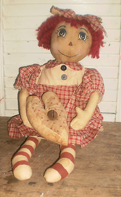 Primitive Grungy Raggedy Ann Doll Heart Ornie