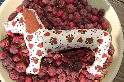 Title (ebay affiliate link): Primitive Pawprint, Bone, & Heart Print Dachshund Ornie