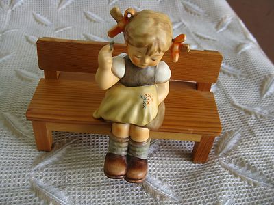 HUMMELS BEAUTIFUL HUMMEL FIGURINE #758 NIMBLE FINGERS W/ BENCH 4.5" TRADEMARK 7