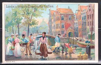 EARLY AMSTERDAM, HOLLAND LINDE'S COFFEE TRADECARD, GREAT STREET SCENE