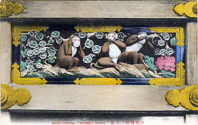 Title (ebay affiliate link): 848 Japan Nikko Three Wise Monkeys vintage color postcard c. 1910