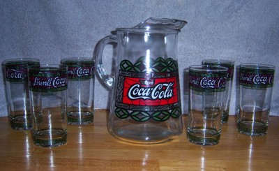 Title (ebay affiliate link): Vintage Coca-Cola Pitcher w/ 6 Matched Coca-Cola Glasses