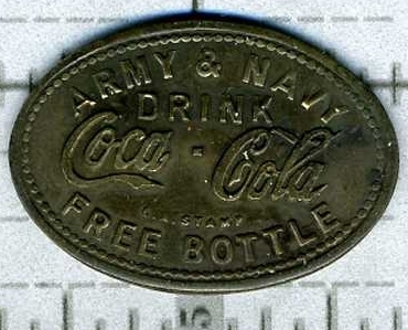 Title (ebay affiliate link): ARMY & NAVY COCA-COLA FREE TOKEN MADE BY L.A. STAMP