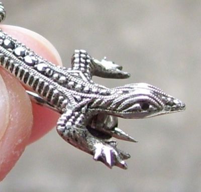 Title (ebay affiliate link): CUTE ANTIQUE 800 SILVER MARCASITE STONE LIZARD BROOCH