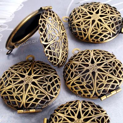 Title (ebay affiliate link): Lot 5 Antique Bronze Round Locket Charm Pendant 1.06"