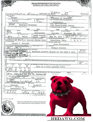 John F. Kennedy President Death Certificate Copy Nov 22,1963 0524