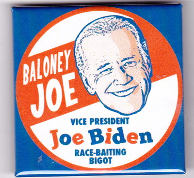 BALONEY JOE VICE PRESIDENT RACE BAITING BIGOT JOE BIDEN POLITICAL BUTTON PIN