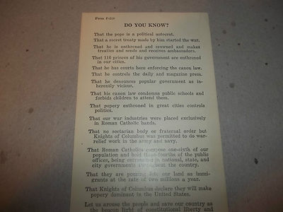 Title (ebay affiliate link): Anti Catholic Catholicism SCARCE 1920's Conspiracy Catholic Roman Knights