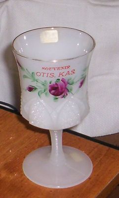 Otis Kansas Hand Painted Milk Glass Souvenir Goblet