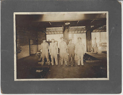 EARLY ORIGINAL CABINET PHOTO OF SERVICE STATION CREW INSIDE - CAR BEHIND