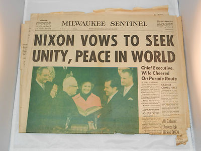 Title (ebay affiliate link): RICHARD NIXON SWORN IN - FRONT PAGE OF NEWSPAPER - JANUARY 21, 1969