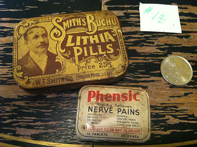 Title (ebay affiliate link): ANTIQUE Smith's Buchu Lithia Pills WF Smith Co. PHENSIC NERVE PAINS Veno Drug CO