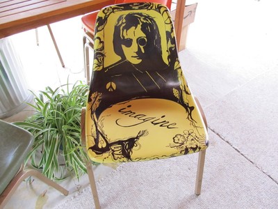 Title (ebay affiliate link): Eames Era Chair in Yellow with John Lennon Tribute "Imagine"